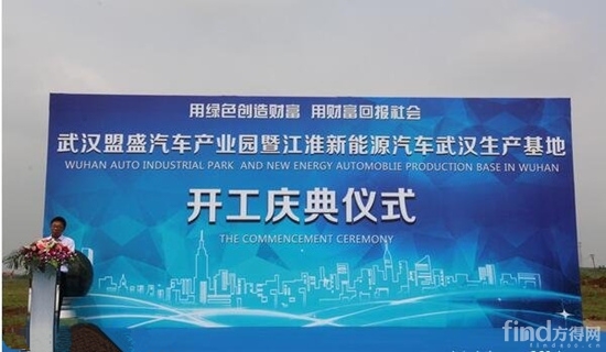 6月12日,武汉盟盛汽车产业园暨江淮新能源汽车武汉生产基地开工庆典在武汉市蔡甸区常福工业园举行。蔡甸区区委书记刘子清先生、蔡甸区区长彭巧娣女士、盟盛集团董事长邹仿涛先生、江淮汽车股份有限公司工艺工程院院长张金贵先生以及各协会领导、商用车及新能源汽车经销商代表300多人出席了本次开工庆典仪式。