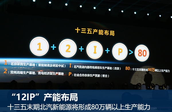 在产业布局方面,北汽新能源也已经进行了清晰的部署,其将以“1(采育基地)+2(常州基地、青岛基地)+I(北汽集团内部传统乘用车生产基地)+P(社会合作伙伴生产资 源)>80”为基础,在十三五末期形成辆以上生产能力,年产销辆规模,打造年营业收入600亿元、上市市值1000亿元的企业。