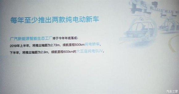 日前,广汽新能源公布了其未来的部分新车规划:在2019年上半年,其将推出一款纯电动轿车,下半年则会有一款五座纯电动SUV推出。