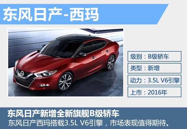 东风日产全新B级轿车西玛在去年广州车展中完成首发,新车不仅采用了日产“V-motion”家族式前脸设计,还搭载了日前轿车产品序列中排量最大的3.5L V6自然吸气发动机,新车上市后,将与天籁、天籁公爵共同为东风日产在B级车市场提供更强的产品竞争力,新车市场表现值得期待。