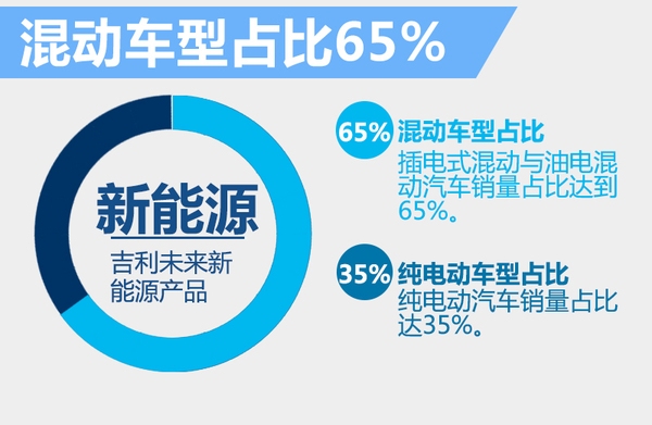 吉利汽车此前宣布,到2020年,新能源汽车销量将占其整体销量的90%以上;其中,插电式混动与油电混动汽车销量占比达到65%,纯电动汽车销量占比达35%;这意味在未来吉利汽车在国内销售的绝大部分车型将是新能源车。届时,旗下产品的油耗将远远小于百公里5升的限制,提前满足国家法规要求,吉利汽车将通过模块化、平台化利用规模效应降低新能源汽车成本,最终实现消费者用传统汽车的购买成本购买新能源汽车。