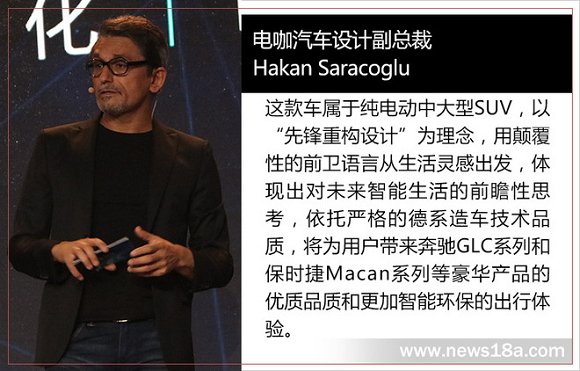设计副总裁Hakan Saracoglu表示:“这款车属于纯电动中大型SUV,以‘先锋重构设计’为理念,用颠覆性的前卫语言从生活灵感出发,体现出对未来智能生活的前瞻性思考,依托严格的德系造车技术品质,将为用户带来奔驰GLC系列和保时捷Macan系列等豪华产品的优质品质和更加智能环保的出行体验。