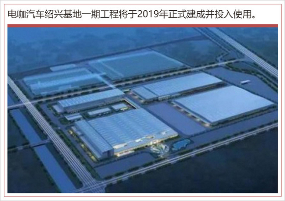 目前,该公司已经投资建设绍兴乘用车生产基地、宁波慈溪商用车生产基地、泉州乘用车生产基地(控股西虎汽车)3大整车生产平台。同时,电咖汽车位于浙江绍兴的整车生产基地整体厂区总投资额55亿元,占地约1000亩,全部建成后年产量可达18万辆。预计该工厂一期工程将于2019年正式建成并投入使用。