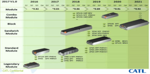 宁德时代电池模块生产计划路线图: