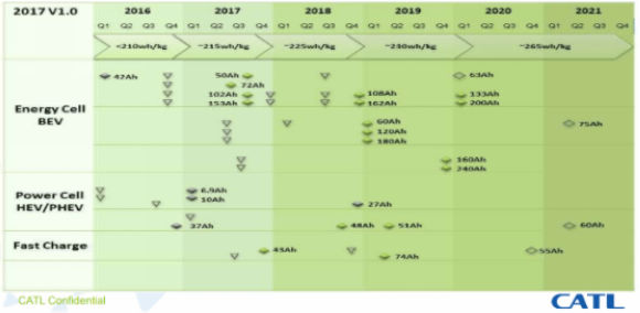 宁德时代能量密度发展路线图: