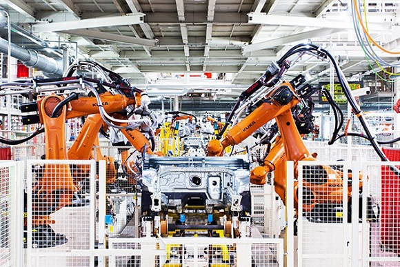 华北基地的焊装车间共有985台机器人,自动化率约79%。采用了激光焊、激光钎焊、CMT焊、Arplas焊等多种先进焊接工艺。生产线基于MQB