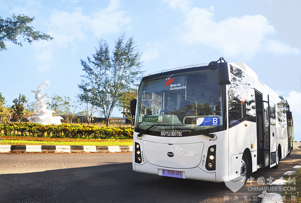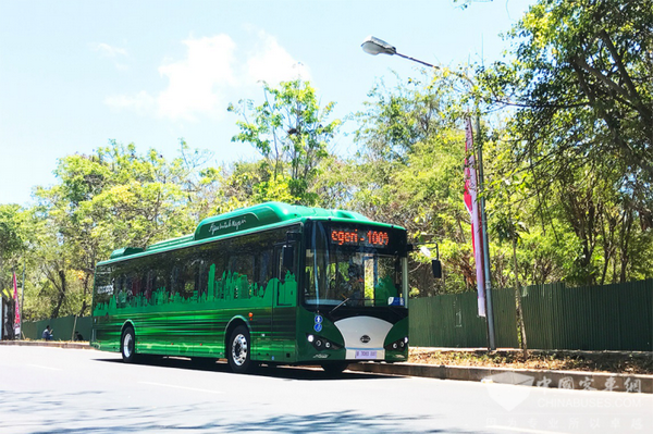 比亚迪纯电动巴士K9行驶在巴厘岛