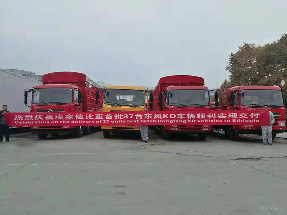 在一年一度的双11全民消费狂欢日前夕,东风商用车首批东非用户的37台东风天锦KR(KD散装出口),从十堰发运将抵达埃塞俄比亚,这也标志着东风商用车有限公司东非市场的KD工厂即将正式生产运行。