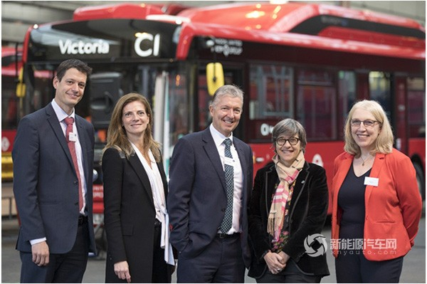 从左到右:伦敦交通局负责地面交通的总经理Gareth Powell、 RATP Dev首席执行官Laurence Batlle、伦敦交通局总裁Mike