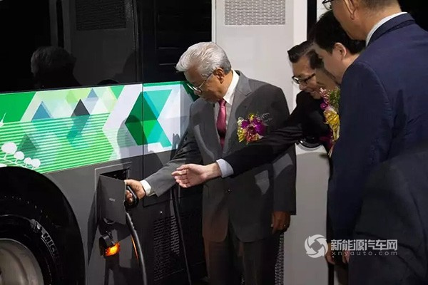 ▲首席部长体验给中车纯电动巴士充电