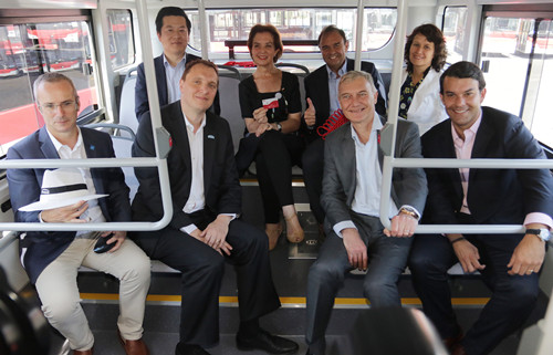 Saka,Engie集团智利分公司CEO Alex Leveque,宇通海外市场副总经理常浩等参观宇通E12