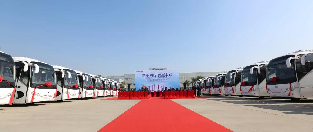 “携手同行,共赢未来”——金龙客车出口阿联酋交车仪式1月23日在金龙客车厦门厂区举行,仪式上,66辆崭新的金龙豪华旅游中巴交付阿联酋客户,该批车辆将于近日装船启航阿联酋投入运营。