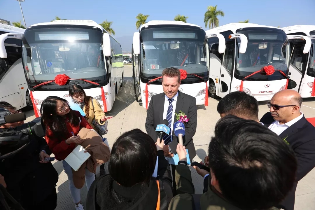 “这是我们与金龙客车合作以来最大批量的一次订单交付。从2008年销售8辆车开始,到2018年实现当地销售200多辆,金龙客车已成为阿联酋及海湾地区第一大客车品牌。”交车仪式上,来自阿联酋的经销商AG汽车贸易公司首席执行官麦克拉斯基回顾双方合作历程,并表示:“在多年的合作中,金龙用实力证明其产品不仅能有效应对阿联酋极端条件,并在不间断长途运营中保持最佳的状态。凭借优质的产品以及高效的服务,我们对下一个十年的合作充满信心!”