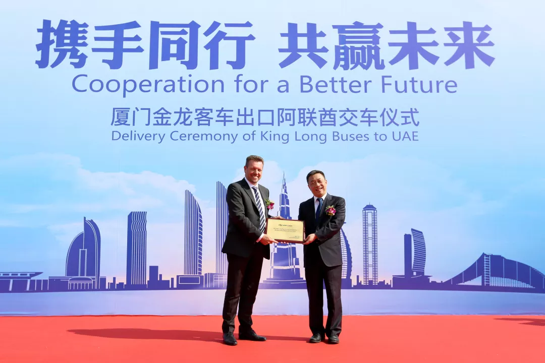 2019年是中阿建交35周年,本批车辆出口阿联酋是中阿两国友谊的见证。同时,阿联酋作为“一带一路”的重要国家,本次合作代表着中阿在一带一路共建的又一重要成果。随着本批车辆交付,金龙客车海外业务实现了开门红,为金龙客车新30年的海外征程打开良好局面。