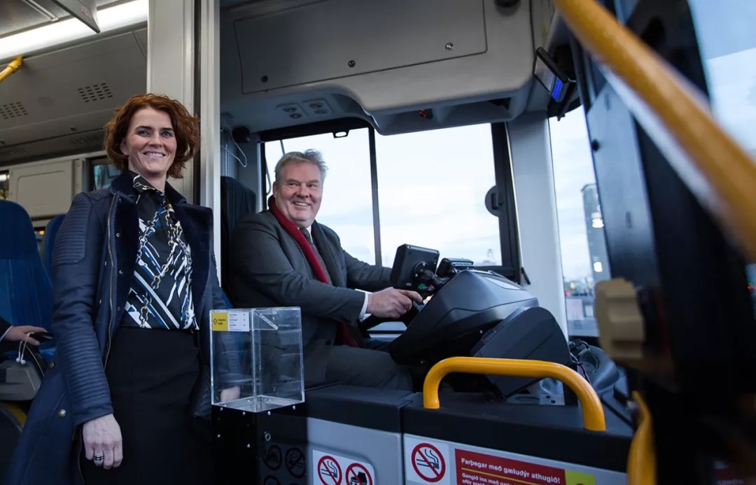 ▲冰岛交通部长和冰岛首都公交公司董事长体验宇通纯电动客车