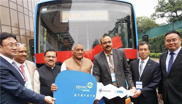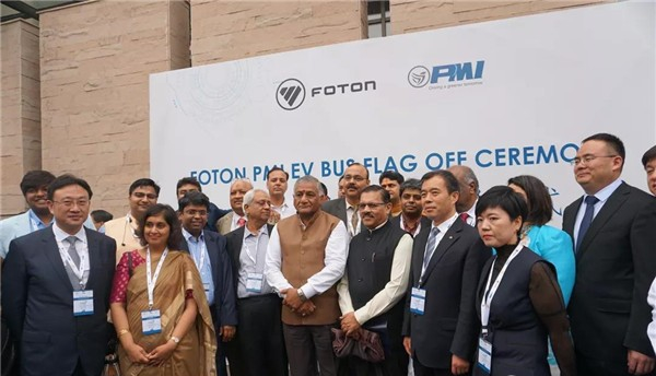 11月7日福田汽车印度70辆纯电动客车订单交车仪式在印度新德里隆重举行。印度交通和公路部常务副部长V.K.Singh将军,印度人民党副主席Shyam