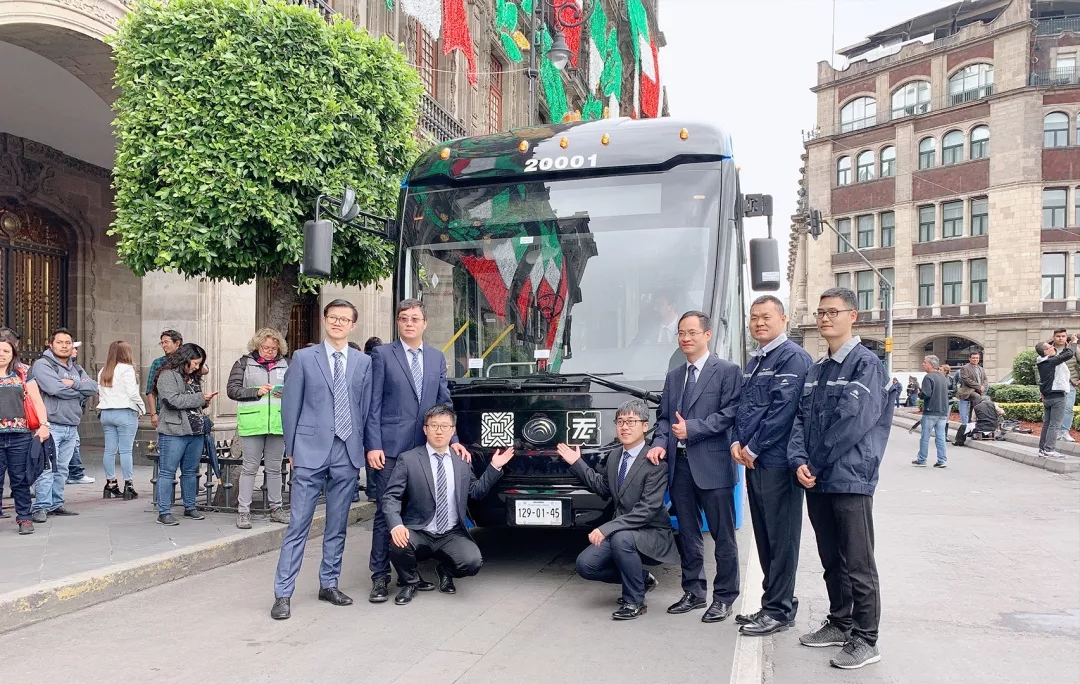 宇通首辆双源无轨电车驶入墨西哥城革命宪法广场
