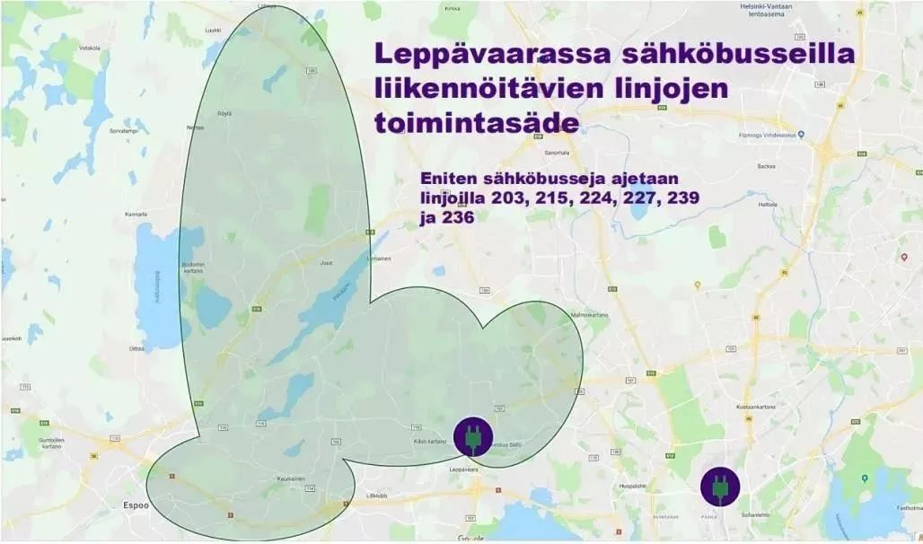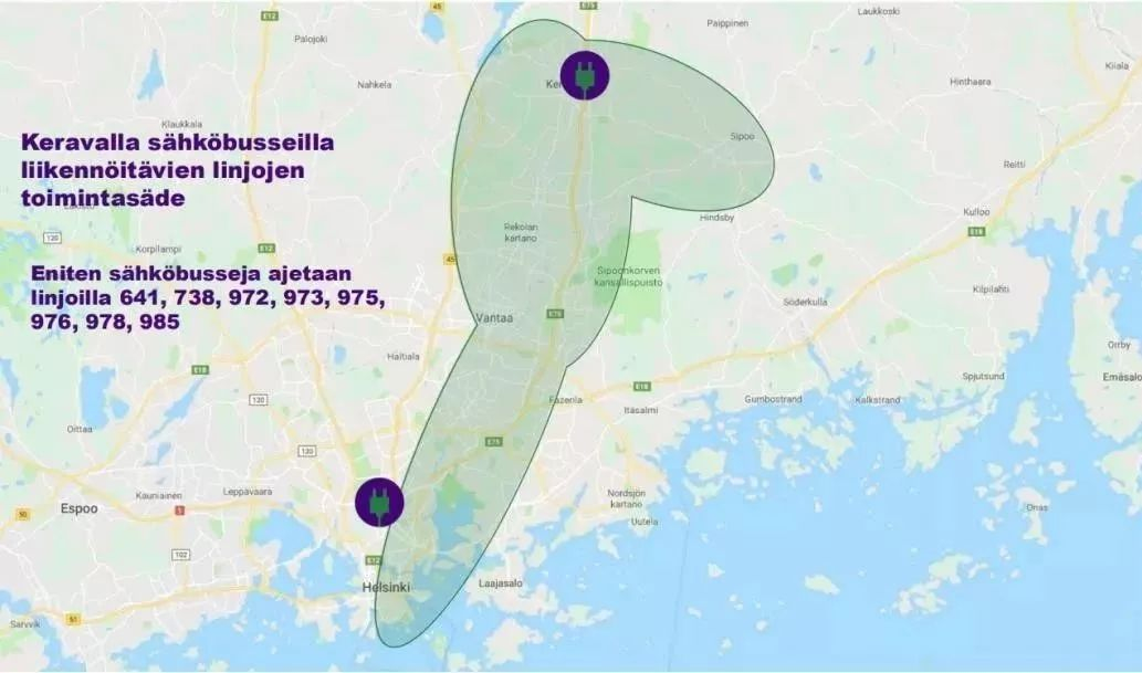 首批宇通纯电动公交车将于8月12日在位于埃斯堡的Leppavaara与Kerava正式投入运营,图为具体运行车次及路线。