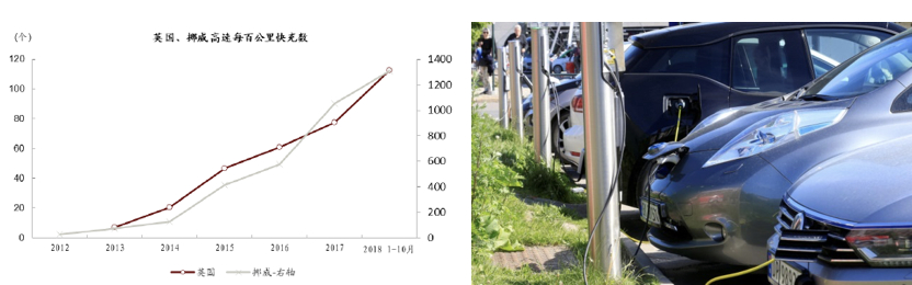 欧洲多个国家也纷纷采取了“胡萝卜”加“大棒”方式,支持新能源汽车发展:设立严苛标准和惩罚制度,支持新能源基础设施建设,并推出多项鼓励措施,从而走在全球前列。首先,欧洲多国提出了限售传统燃油车时间表:挪威和荷兰计划在2025年;德国在2030年;英国、法国等国在2040年。其次,在新能源基础设施方面,欧洲快充迅猛增长,同时发力高速百公里快充数布局。挪威高速百公里快充数超1300个;英国每个高速公路服务区至少设有一个快充网点。在购置补贴方面,欧盟各国购买纯电动车的补助金普遍在4,000欧元左右,购置税和道路税方面也均有优惠,例如德国、荷兰不征收购置税,法国、德国、挪威免征道路税等。许多国家还为新能源车型开放特权,例如可在公交专用道路上行驶、免费使用充电桩、停车场等权利。