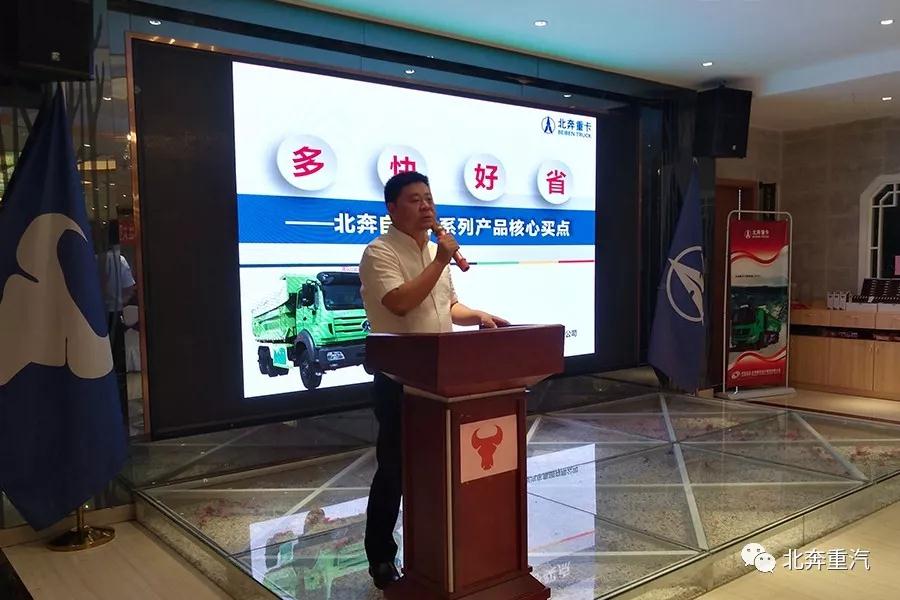 图解:北奔重汽华南大区经理范聪辉在进行企业和产品介绍