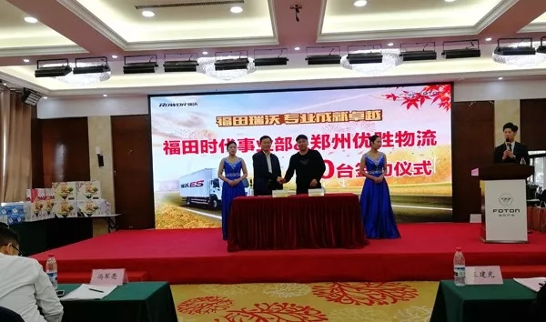现场,福田时代与郑州优胜物流公司举行了订购185马力的瑞沃ES5中卡60辆签约仪式,这是该物流公司在先期采购基础上的再次出手。