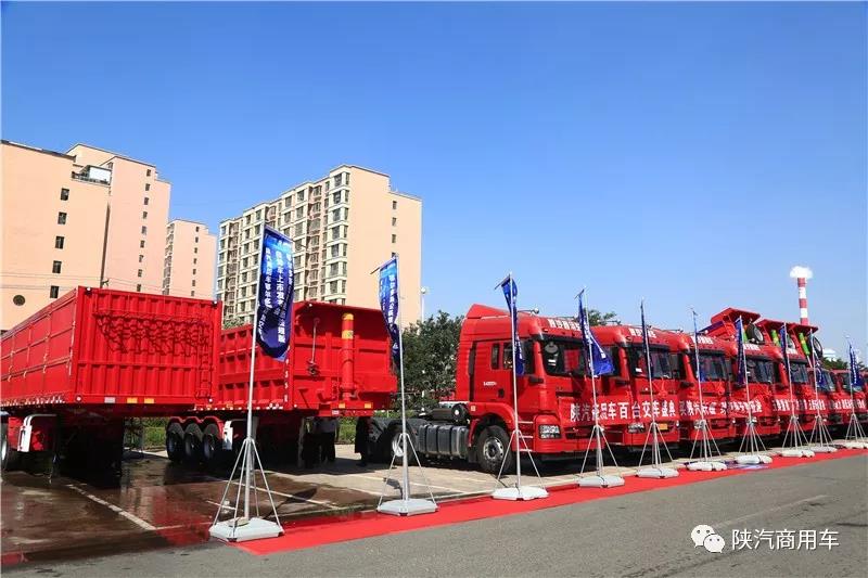 2019年9年6日,陕汽商用车主办,准格尔旗森海汽贸有限责任公司、中集华骏车辆有限公司承办的“合规高效 运输无忧”陕汽商用车百台牵引车交车仪式暨鄂尔多斯公铁联运法规版自卸车上市发布会在鄂尔多斯隆重召开。