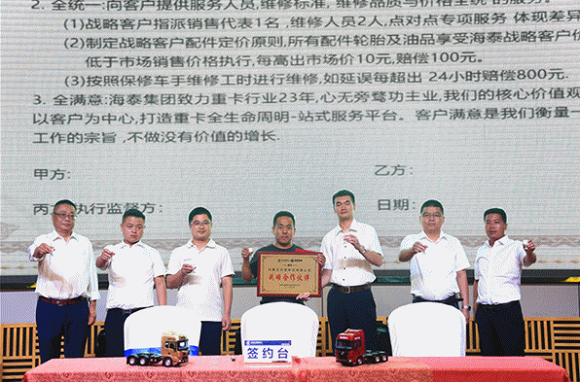 陕汽商用车优秀的产品品质得到了现场客户的高度认可,随后,陕汽商用车联合森海汽贸共同与五家合作单位现场签订战略合作,活动气氛再次达到高潮。