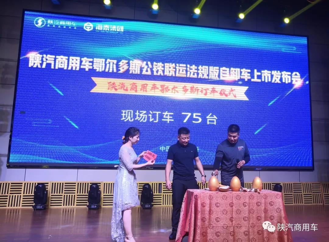 会上,刘学利、席呈涛、肖磊、张劲松、周海军、韩杰共同开启陕汽商用车鄂尔多斯公铁联运法规版自卸车上市启动仪式,现场气氛热烈。