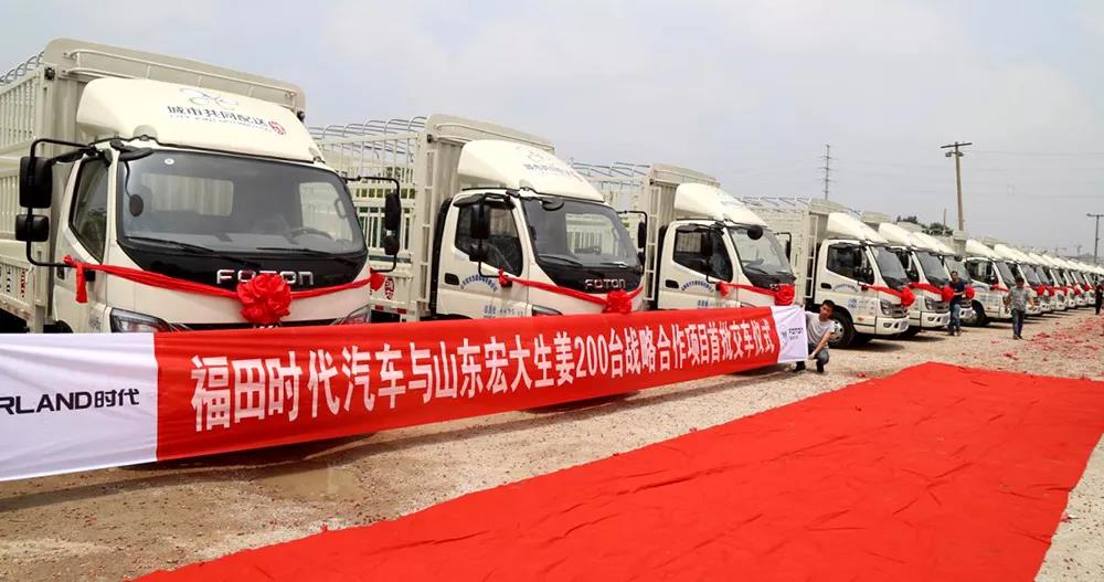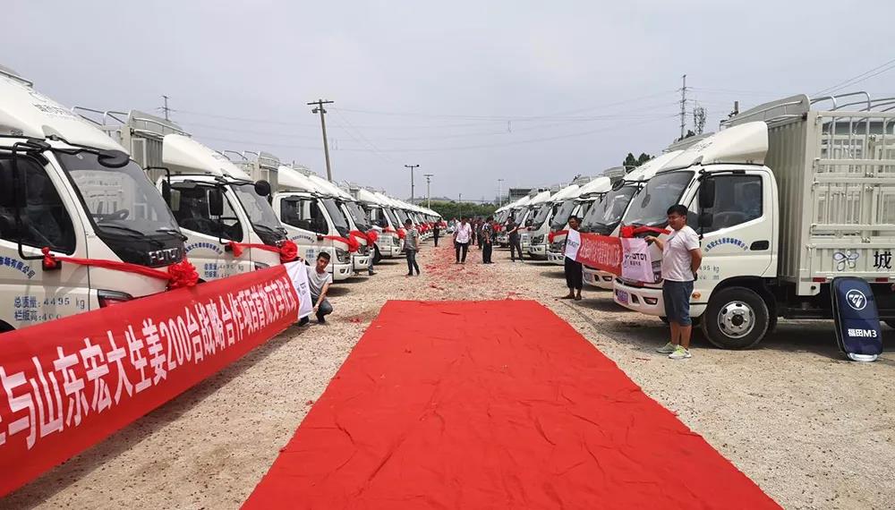 这42台时代M3全部由山东宏大生姜市场有限公司订购。此前,时代汽车已经与山东宏大生姜签订了200台汽车的战略合作协议,此次活动是首批车辆交付仪式。活动现场热闹非凡,在福田汽车时代事业部营销公司领导、时代汽车昌邑经销商、客户代表及多家新闻媒体的见证下,首批车辆正式交由山东宏大生姜使用。