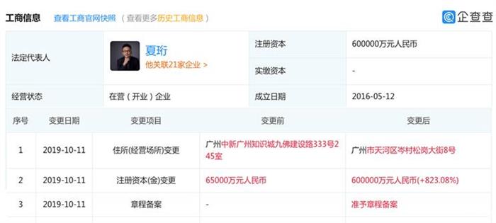 10月11日,广州橙行智动汽车科技有限公司对旗全资子公司小鹏汽车科技有限公司认缴出资60亿元人民币,对后者进行注册资本变更,小鹏汽车科技有限公司的注册资本调整为60亿元人民币。