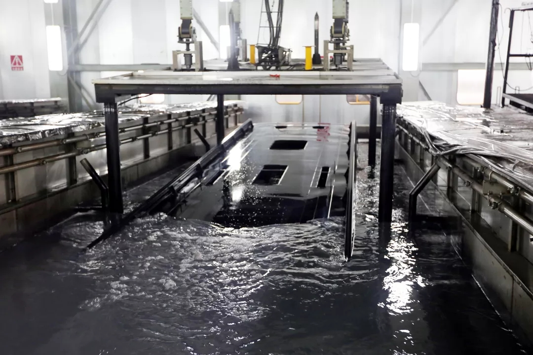 黄海新能源基地建设参照了国内外一流客车企业的先进生产方式,新厂生产工艺达到国内一流客车生产水平,涵盖零部件、焊装、涂装、总装四大生产车间。其中在整车电泳生产线方面,防腐耐盐雾试验可以达到1000小时以上,有效地提升了整车的防腐性能;在整车面漆生产线中,包括有喷漆室、烘干室、发泡式、打磨工位、机械输送系统等;并且车身总成的工位移动采用PLC智能控制,实现了喷漆室、烘干室、机械输送装置的联动,是国内最先进的。此外,该基地生产车间采用了国内客车行业先进的U型厂房设计,使核心车间生产线连贯成一体,实现了流程化生产;同时还设计有调试车间及检测线,车间内布置国内最新型的用于整车检测的检测线、四轮定位仪、淋雨设备;以及在车辆试验场方面有着2.3公里的专用试车跑道,设有扭曲路、石块路、搓板路、卵石路等特殊路面,以严苛检测验证确保产品品质。