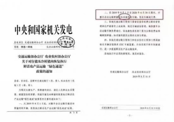 针对猪肉不断涨价,国家也采取了相应措施。8月31日,交通运输部办公厅、农业农村部办公厅联合发文“特急·明电”:从9月1日起,对整车合法运输仔猪及冷鲜猪肉的车辆,恢复执行鲜活农产品运输“绿色通道”政策。同时,在2019年9月1日至2020年6月30日期间,对整车合法运输种猪及冷冻猪肉的车辆,免收车辆通行费。不难看出,虽然牵扯到猪肉价格上涨的因素有方方面面,但政府部门对猪肉价格的平抑措施已着力在生猪运输、猪肉运输等运输环节成本的降低上。