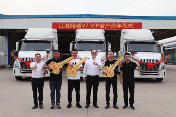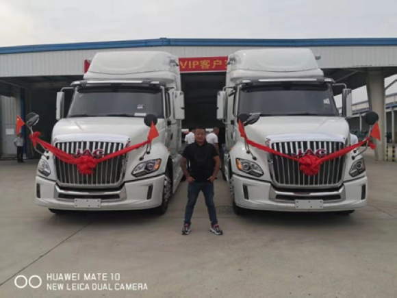 9月25日,来自江苏徐州的张子龙来到了江淮格尔发厂家,提了他日思夜想近半年的格尔发长头卡车V7。看着这辆白色的车,张子龙的喜悦之情溢于言表,连连说“太好了,太好了!”