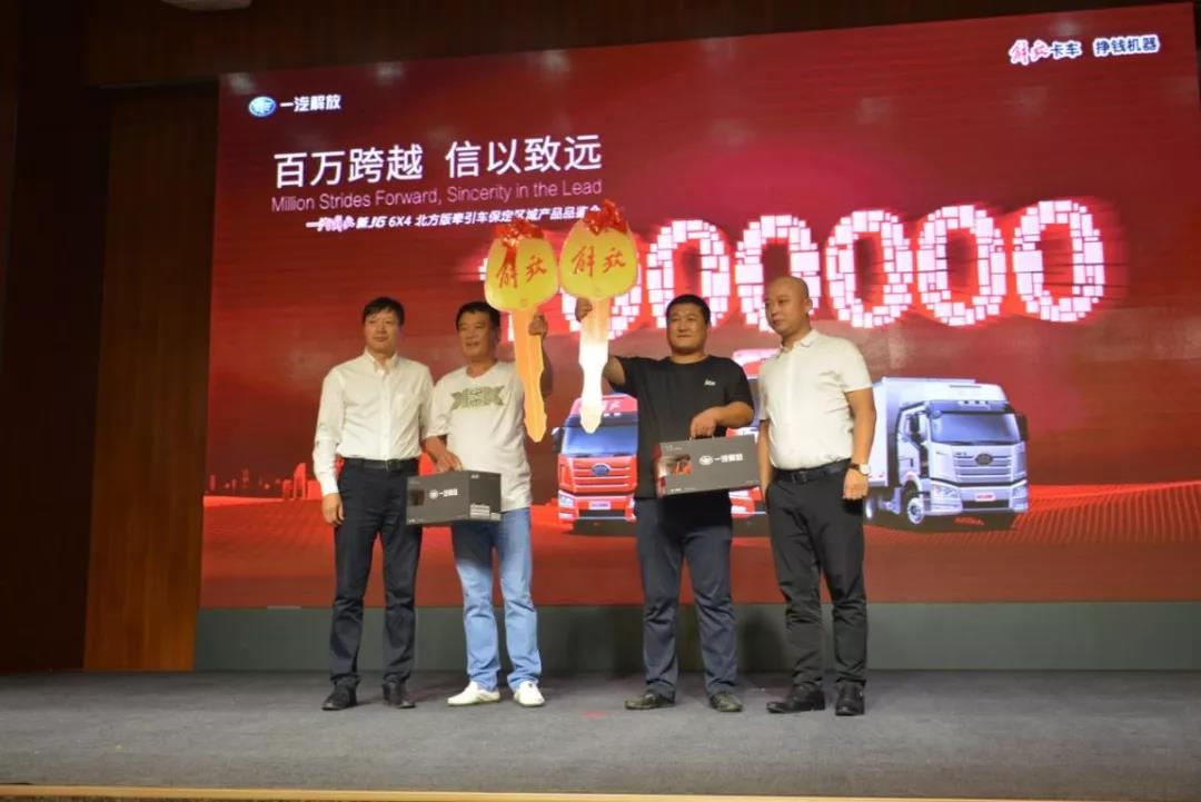 现场解放的忠实用户上台讲述自己和解放卡车的亲身经历,表示解放卡车让自己的事业取得进一步成功,并获得解放卡车精美车模及金钥匙。
