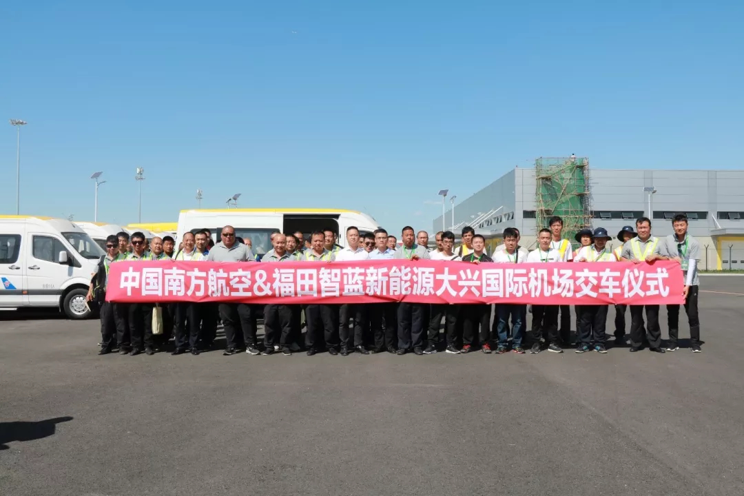 2019年8月29日,南方航空从福田智蓝新能源采购的纯电动机场内作业用车成功交付,正式投入大兴国际机场运营。据悉,南方航空采购这批车辆,均为新能源车辆,专项应用于大兴国际机场内部作业,为大兴国际机场绿色、高效运营提供保障,助力大兴机场成为世界一流的平安、绿色、智慧、人文的国际枢纽机场。