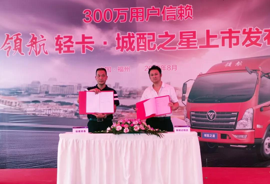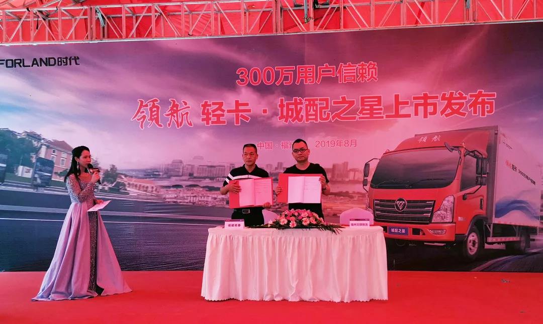 发布会现场,领航轻卡成功签约了360台意向订单。其中与福州文琪物流有限公司签订200台战略订单,与鲜易达物流冷链配送有限公司签订160台战略订单。