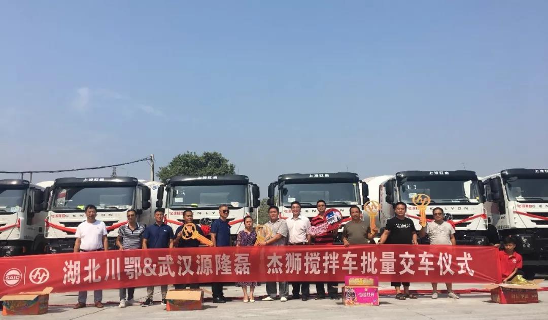 8月18日,在湖北武汉的某搅拌站内,上汽红岩杰狮搅拌车批量交付湖北武汉某公司,助力武汉基建运输,建设美丽大武汉。
