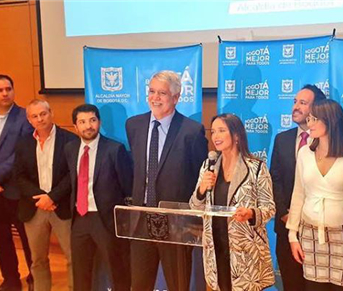 在波哥大市长Enrique Peñalosa(左五)的见证之下,TransMilenio SA的高管正式宣布比亚迪成功中标379辆纯电动大巴订单。