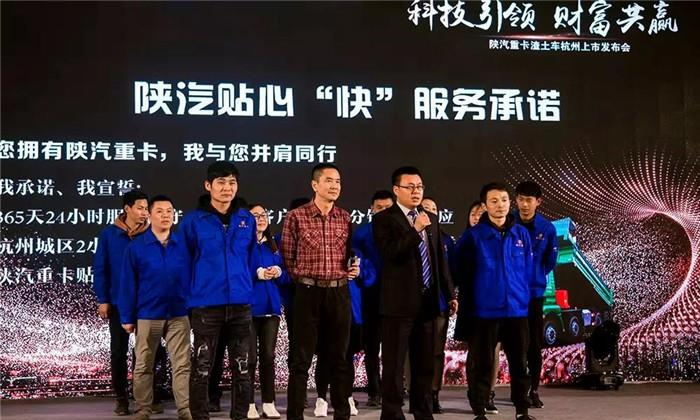 活动中,陕重汽销售公司浙江区域总经理付龙飞、杭州德鸿供应链总经理陈春明分别上台致辞。陕重汽销售公司浙江区域服务经理朱波,带领陕汽重卡售后服务团队代表进行陕汽贴心“快”服务承诺宣言!