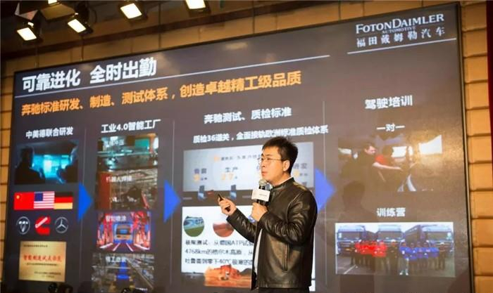 福田戴姆勒汽车华北分公司市场部渠道运营支持经理宋志强讲解欧曼GTL自动挡产品