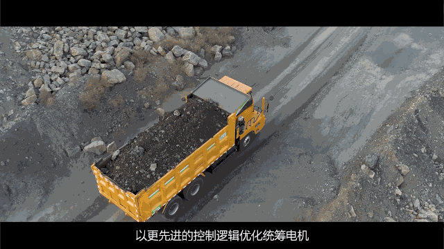 纯电动矿用自卸车更独具新能源产品节能环保、清洁低噪的特性。独特的电机制动系统能量回收率达10%以上,全工况下系统效率处于高效率区大于80%。该车采用了更先进的控制逻辑,对电机、变速箱、电池高效区进行优化统筹,比同类产品节能5%以上;对于重复运营路线则通过对车辆动力性的大数据采集,自行优化能量分配和换挡点,节能效果更明显。