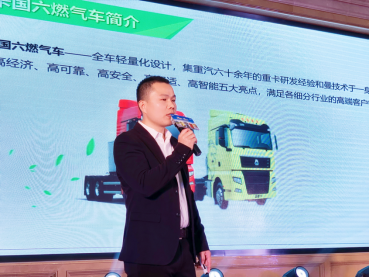 中国重汽集团商用车销售部四川分公司销售经理朱彦龙现场举例,440马力汕德卡国六燃气车型,有用户在1953公里专线标载运输,百公里气耗仅30.62kg。他表示,“中国重汽汕德卡用重汽智慧全新定义了国产天然气产品的新标准,将以高可靠性、高经济性、高舒适性、高安全性、高智能性,助力每一位用户赢得高效物流的天下。”