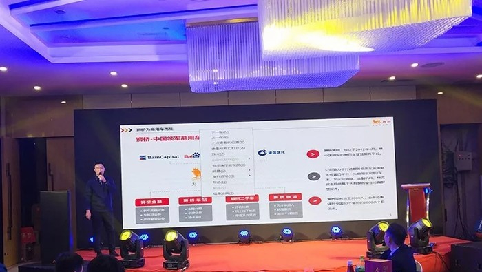 狮桥集团产品经理李栋讲解了狮桥产品金融政策,狮桥集团在商用车金融领域的全产业链布局、灵活、快捷的金融产品,为广大用户提供最适合的金融方案,并以1张身份证5分钟放款的独特效率震惊全场。