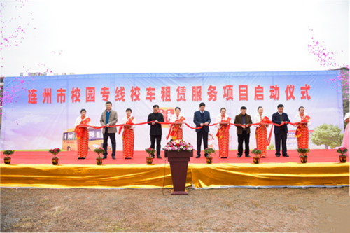 2019年12月27日,广东清远,连州市校园专线校车租赁服务项目启动仪式隆重举行,64辆宇通校车正式投运,将直接服务于3800多名当地小学生的上下学之路,为孩子们的平安出行保驾护航。仪式现场,连州市副市长唐荣伟、邓清航等领导出席,人们更是敲锣打鼓、鸣炮舞狮庆祝,欣喜之情溢于言表。