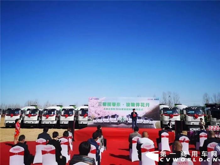 “三楷搅春来 骏驰伴花开”,3月19日下午,由一汽解放和河北骏驰共同举办的,京津冀首批30辆解放搅拌车交车仪式隆重举行。本场交车仪式首次采用线下+线上的新颖方式,现场搅拌车整齐列阵,分外亮眼;线上一汽解放、河北骏驰、三楷展创多位领导连麦对话,与直播间众多粉丝共同见证交车仪式现场盛况。
