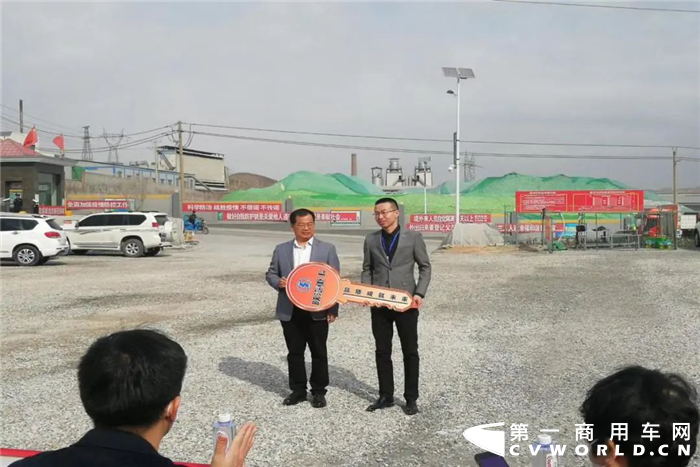 交车环节,陕重汽销售公司副总经理王永锋向客户递交了象征着精诚合作、共创辉煌的金钥匙,以及陕汽在疫情期间为保障客户安全运营精心打造的个人意外保险。