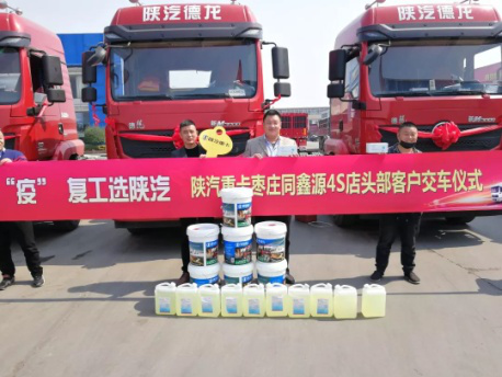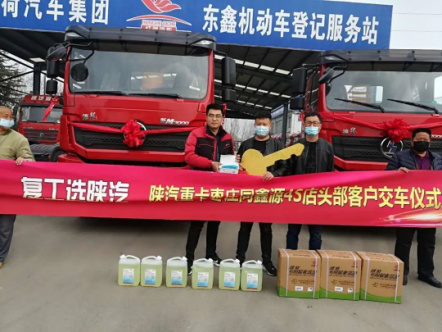 近日,陕重汽销售公司济南办事处枣庄路安物流有限公司10辆陕汽德龙新M3000牵引车交车仪式在枣庄同鑫源公司举行。枣庄路安物流有限公司经理王介峰以及枣庄同鑫源销售总经理彭福东先生出席了此次活动。活动现场还为客户送上口罩以及消毒液等防疫用品,保障客户平安出行,为客户提供便捷安全的提车环境。