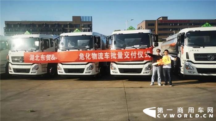 4月10日,唐山东贸汽车销售服务有限公司向客户交付首批8辆东风天龙VL危化牵引车,后续还将向其交付12辆。