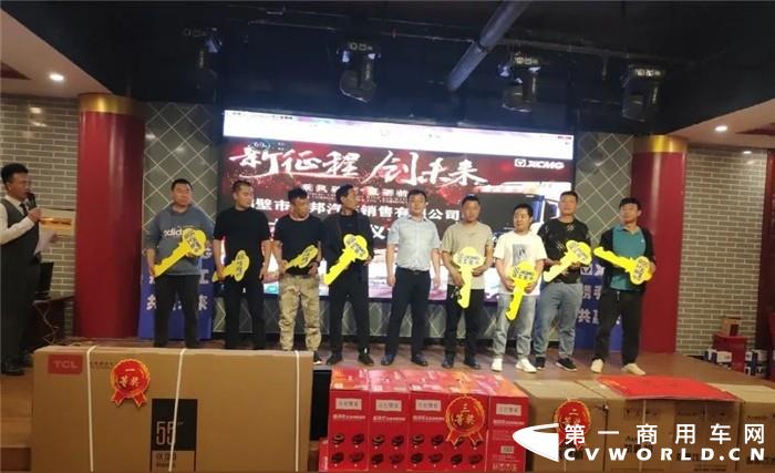 近日,徐工重卡鹤壁鑫邦经销商在淇县为客户隆重举办了交车仪式。鹤壁物流行业协会、金融服务商等相关行业负责人以及新老客户等300余人到场。