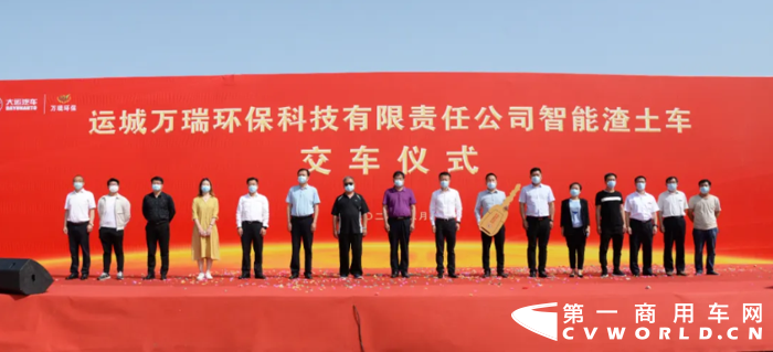 万瑞环保作为大运的核心合作伙伴,双方建立了深层次的战略合作关系,此次,30台智能渣土车的批量交付,也是双方互信互利的具体体现。同时,大运与万瑞环保共同践行运城市“运品运用”的号召,在运城市建筑垃圾资源化服务利用中心各级领导的指导和关怀下,共同将渣土车项目打造成为“运品运用”的典范。
